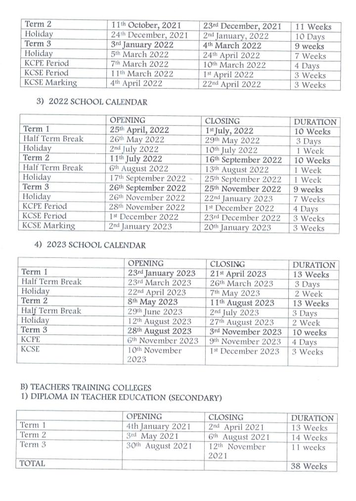 The first 2021 KCPE examinations will be done between March 7 and 10, while the Form Four candidates will sit theirs from March 11 to April 1 this year.